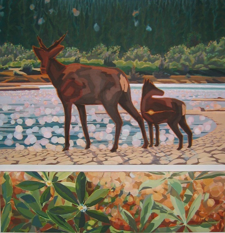 Bonnet Plume River: Diamonds and Gold, acrylic on canvas, 2 panels, 66” x 66”
